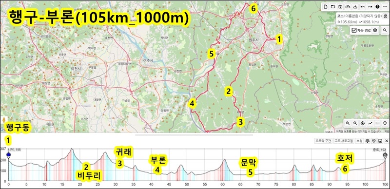 원주역-비두리-귀래 코스 대신 서곡-흥업-양안치-귀래 코스 선택
