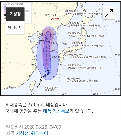 수,목 태풍 예보가 있어서