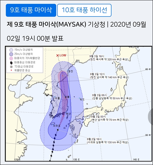태풍 마이삭 올라오는 중