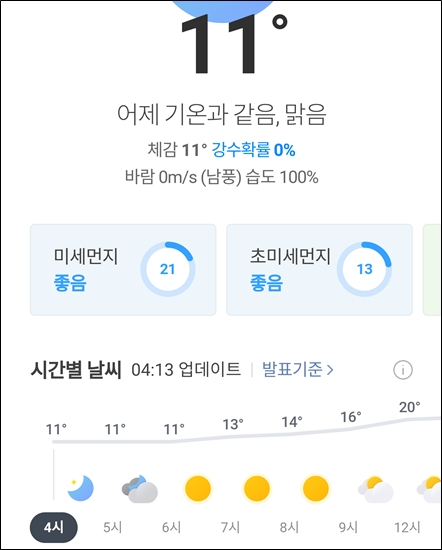 새벽 기온이 꽤 많이 떨어짐