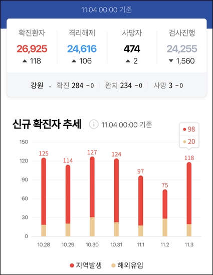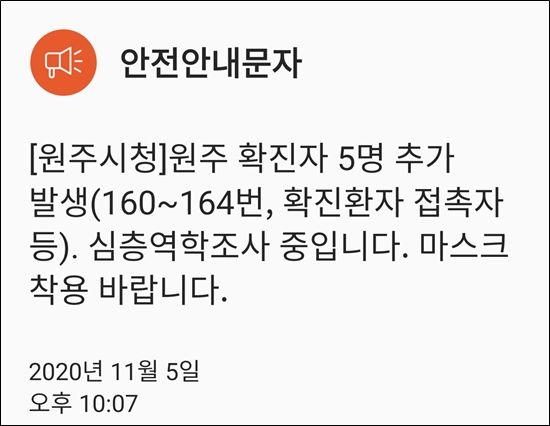 원주시 확진자 증가 중