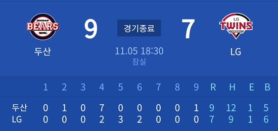 신민재의 끝내기 안타로 승리