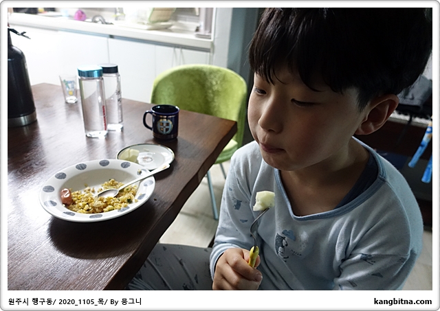 강바다도 간혹 아빠 아침식사 할 때 일어남