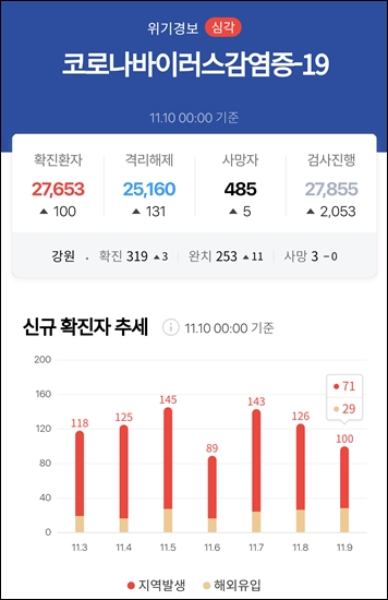 코로나 환자 100명대 유지