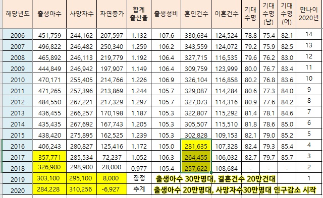 그리고 드디어 사망자수도 30만명대를 넘어서서 인구감소가 본격적으로 시작될 것으로 예상되고 있다.