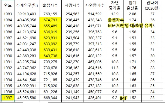 1980년대 들어오면서 출생아수가 60~70만명을 유지하고
