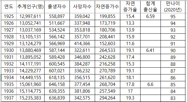 1925년부터 출생자수와 사망자수 파일이 있다.