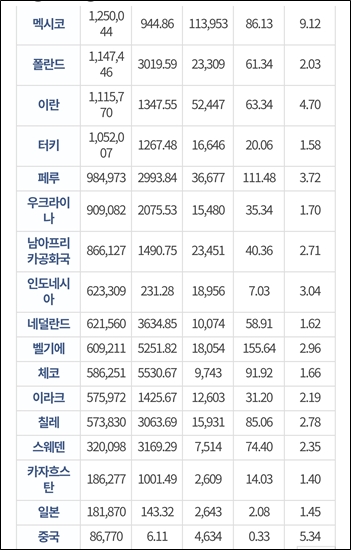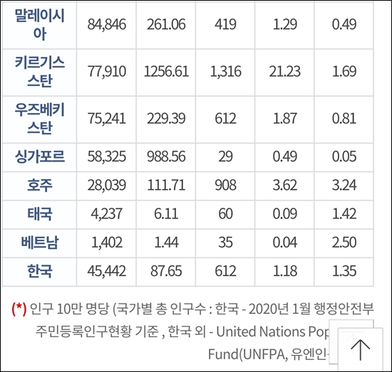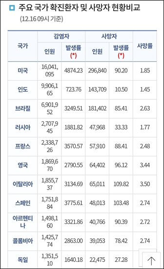 사망자 발생률은 페루, 벨기에, 이탈리아 순