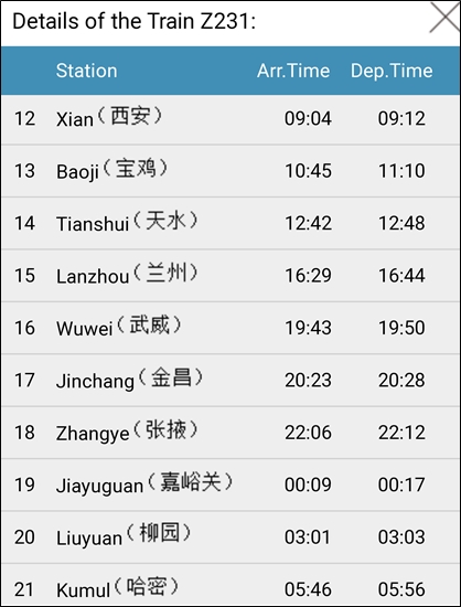 시안이 12번으로 되어 있으니까 다른 곳에서 기차가 출발하여 시안을 지나간다.