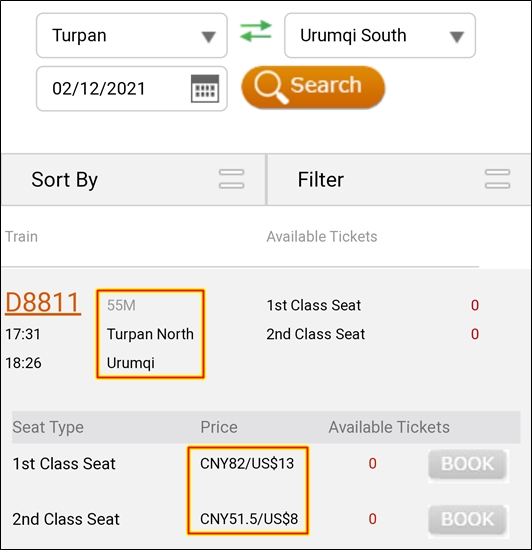 투루판->우루무치는 고속철로 50분밖에 걸리지 않는다.