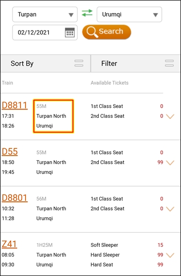 우루무치 출발이 아니다.