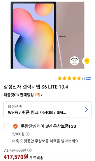펜슬이 꼭 필요하다고 해서 결국 갤럭시탭6라이트 128G로 낙점.
