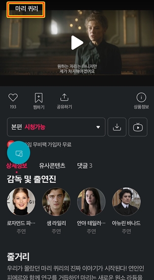오전에 심심하여 마리퀴리 시청