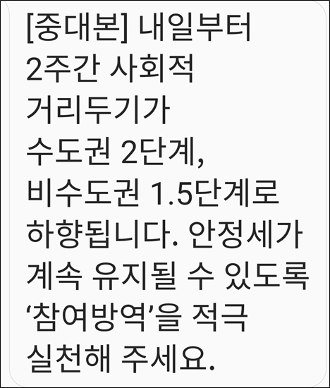 개학을 앞두고 월요일부터 비수도권 1.5단계로 하향