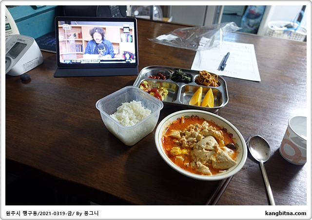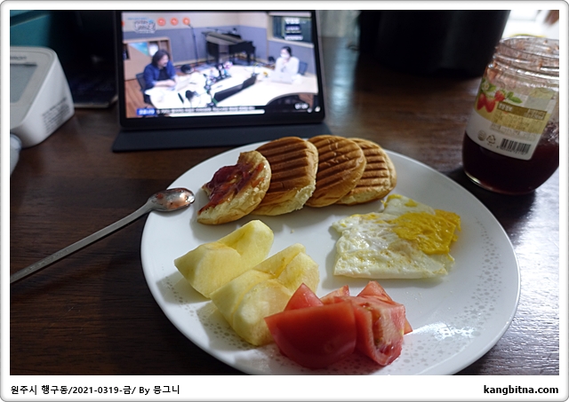 강바다 갤럭시탭으로 뉴스공장 시청하며 아침 먹기