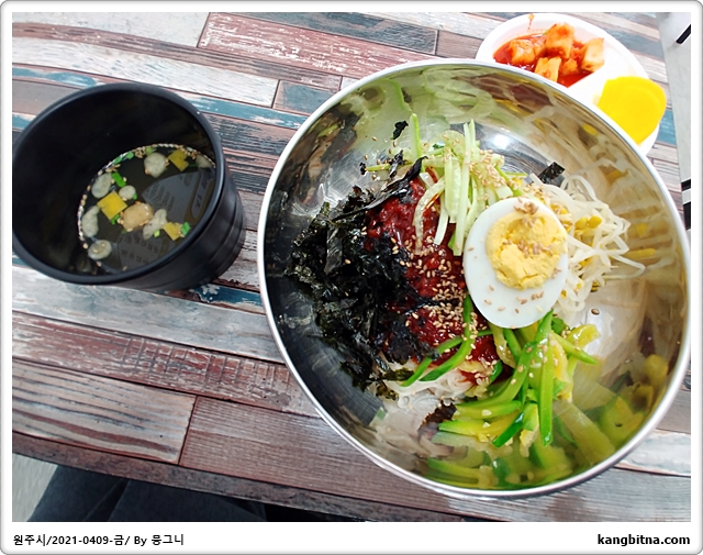티볼 기다리는 동안 비빔국수로 점심 식사