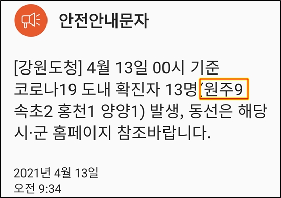 원주에 확진자 증가
