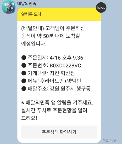 강빛나 야식 원해서 치킨 주문