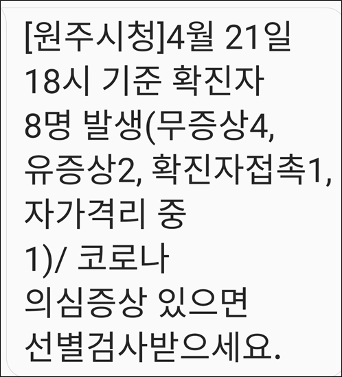 원주시 확진자 8명
