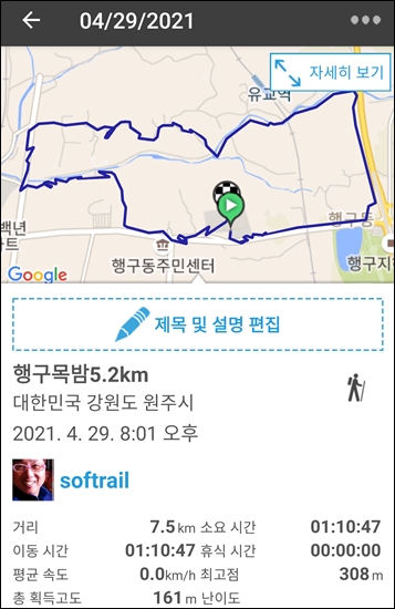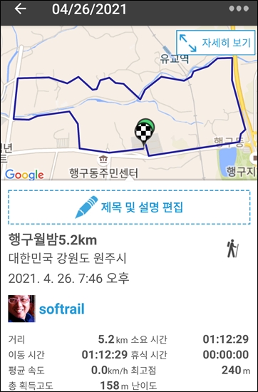 항상 걷는 동네 한바퀴 5.2km인데