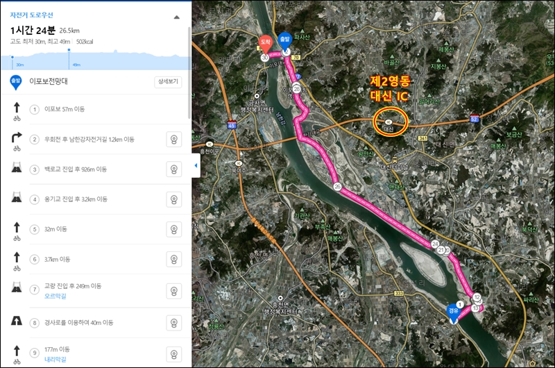 대신 IC 나온 후에 제2영동고속도로 아래를 통과하면서 이포보 가는 것을 인식하게 됨