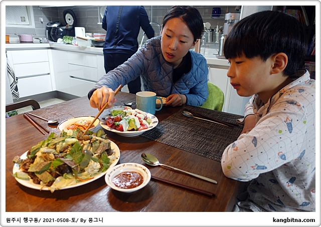 담쿡에서 조리 음식 포장해 와서 저녁식사