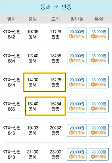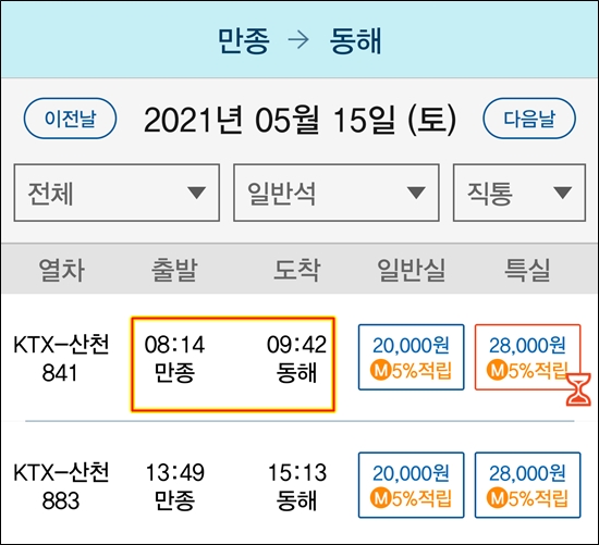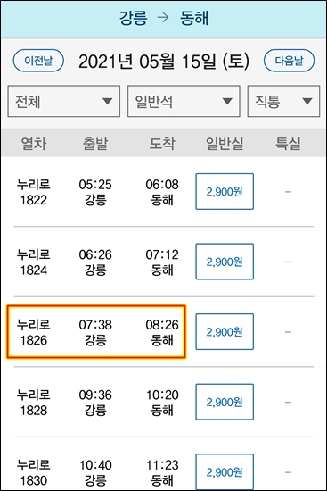 동해에서 10시에 출발하면 15:56분 기차 정도 탈 수 있을 것 같다.
