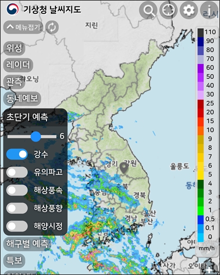 정동진역 부근에 비가 내리는 것으로