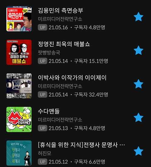 출퇴근 시간에 차에서 듣는 팟캐스트 5개로 압축했다.