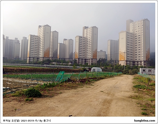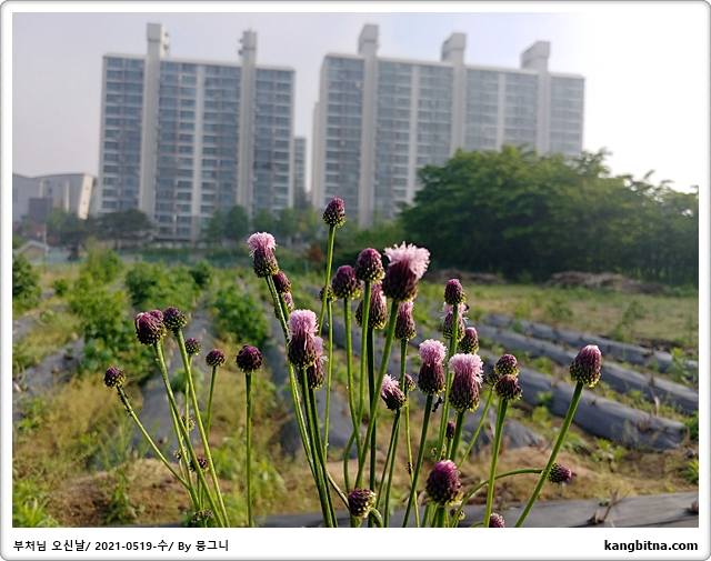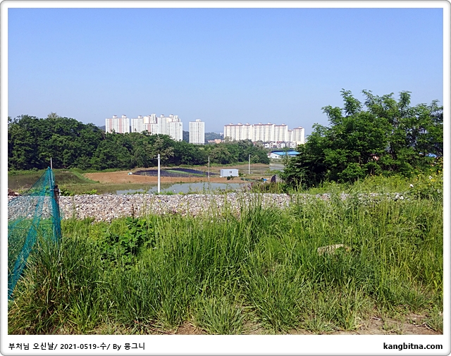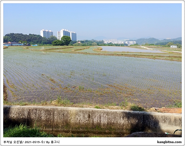 모내기하는 논을 보기 위해 아파트 뒷길도 조금 더 걸음