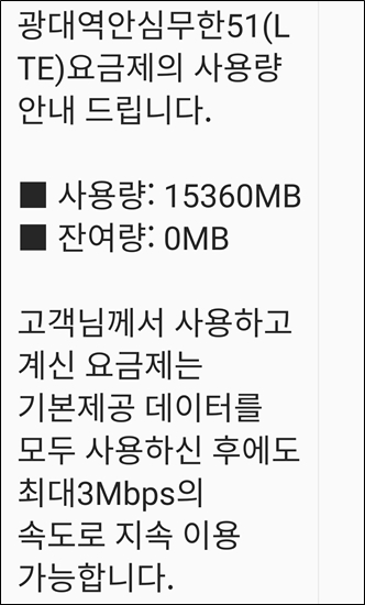 3Mbps로 무제한 제공되기 때문에 여전히 야구중계 보는데 큰 어려움 없다.