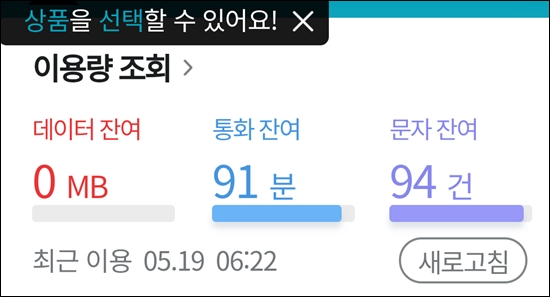 이제 19일인데 KBO 중계 때문에 데이타 15G 모두 소진