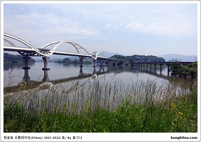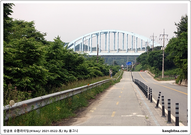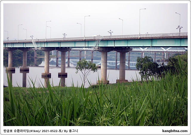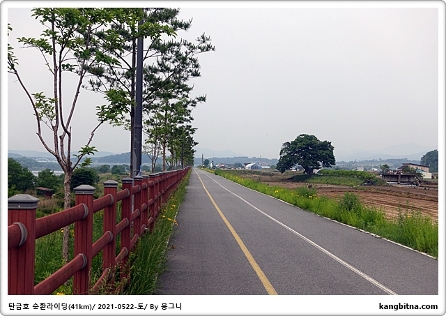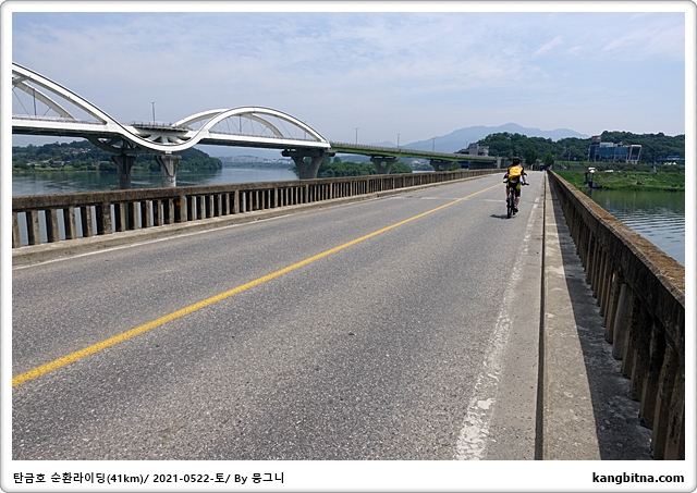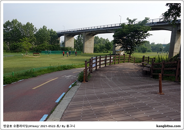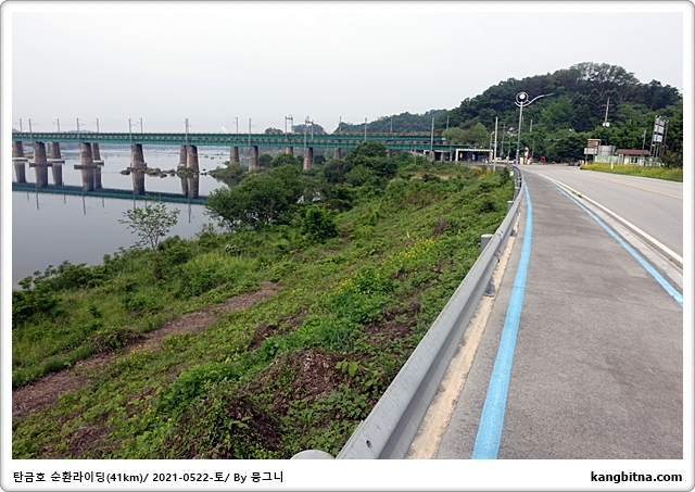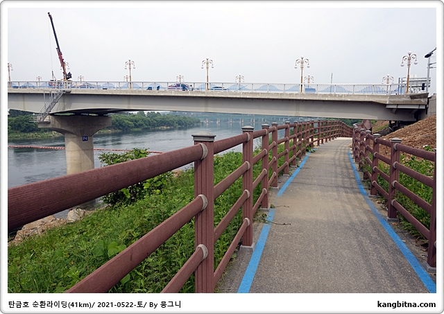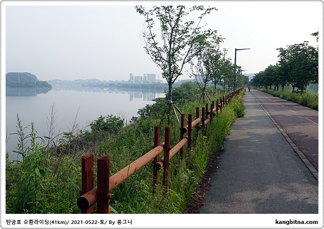 강둑에 시원하게 자전거 도로 조성되어 있음