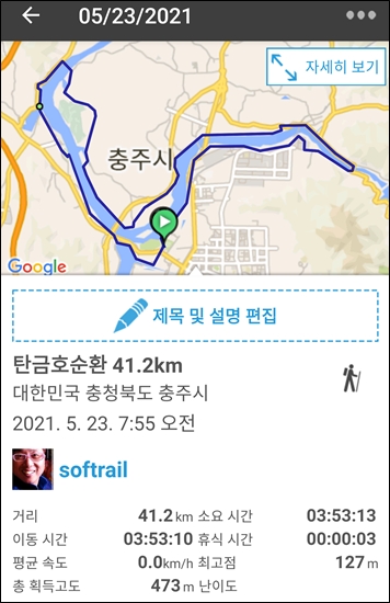 토요일 캠핑(#38) 일요일 집에서 잠 5월 4일 화요일 다시 캠핑장으로(#39) 아빠는 저녁먹고 집으로 옴 어린이날 아침 충주 탄금대 순환라이딩 도전 집에서 54km 옆 식당에 코로나 확진자 다녀간 후