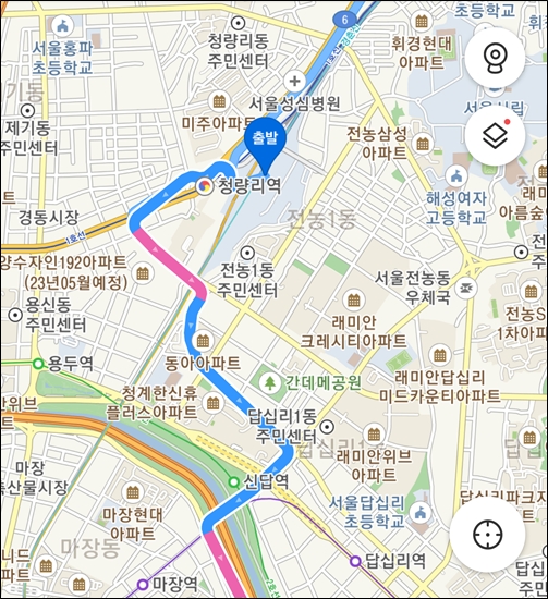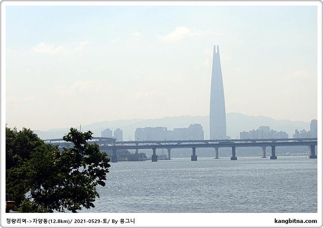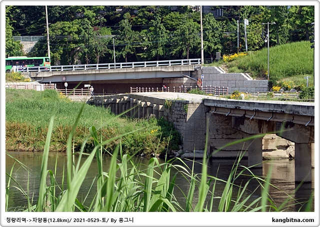 다리를 너무 일찍 건너 중랑천으로 들어감