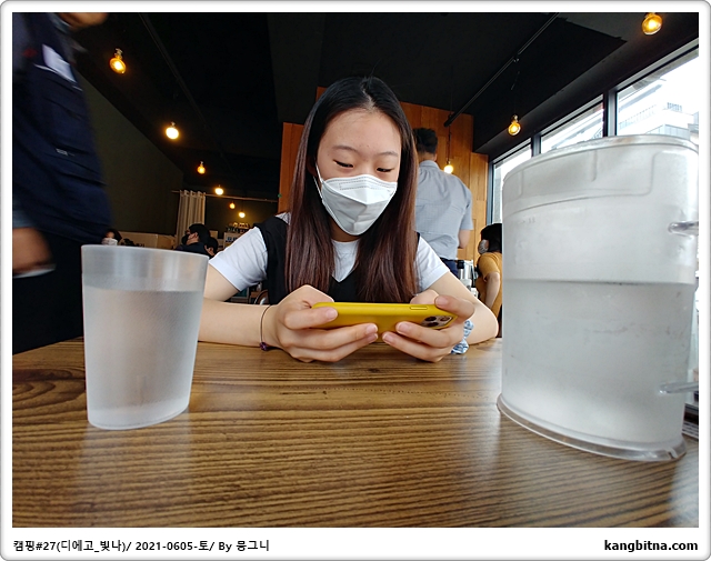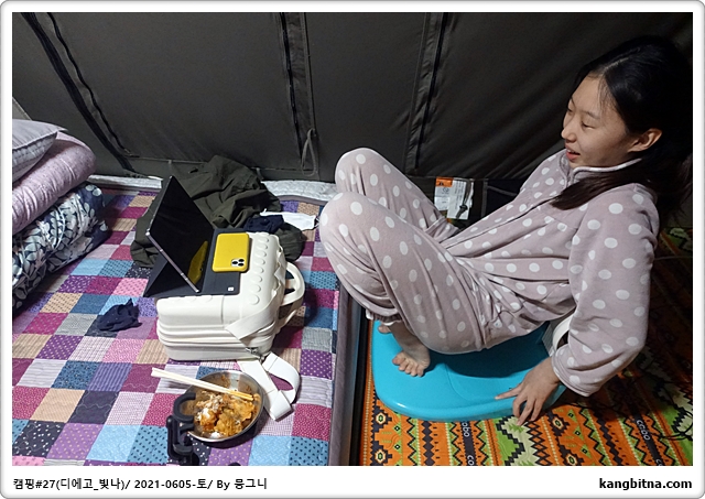 닭강정 먹고, 빛나와 아빠 캠핑장으로...