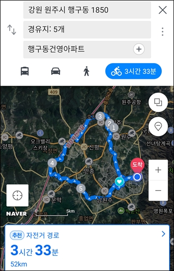 자전거도로가 많은 원주천으로 돌아가기로 결정