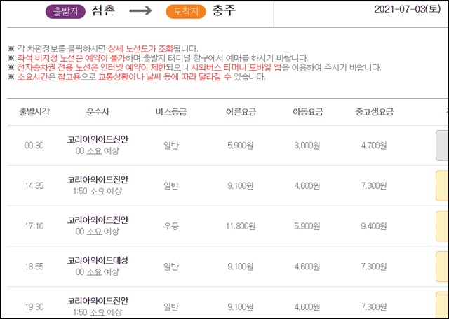 코로나 때문에 연풍->충주 버스 시각표 잘 나오지 않음