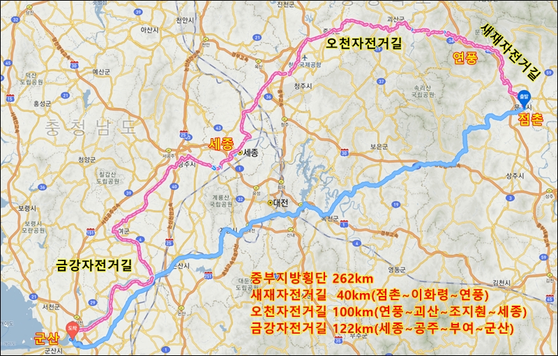 기차 이용이 가능한 연풍->조치원/ 조치원->군산으로 끊어서 당일 라이딩으로 두 번 계획