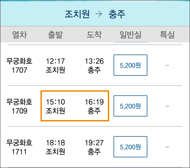 시간상은 제천역 5:45 출발 조치원역 7:22 도착