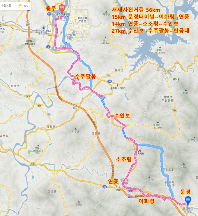 그리고 살짝 겁도 나서 문경에서 출발하기로...