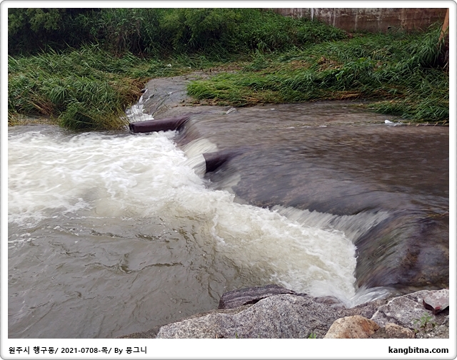 물이 꽤 세차게 흐른다.