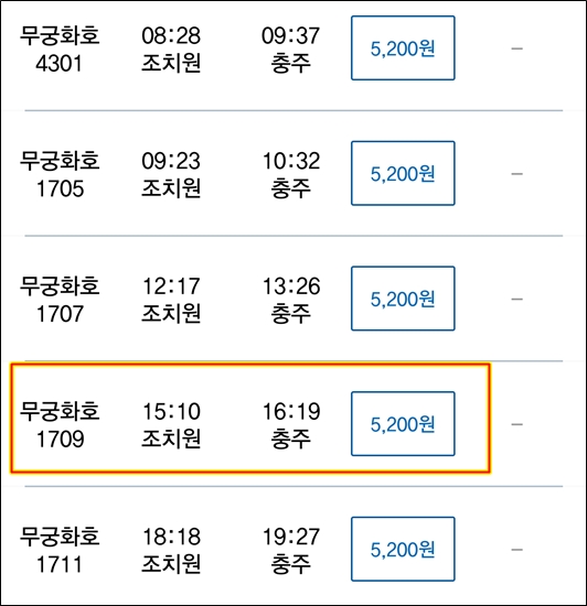 무궁화호는 5분밖에 걸리지 않는다.