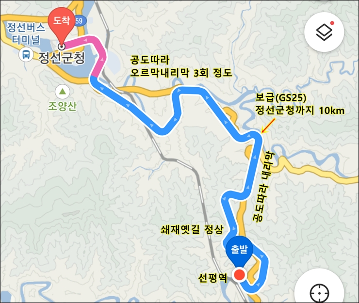 선평역에서 정선군청까지