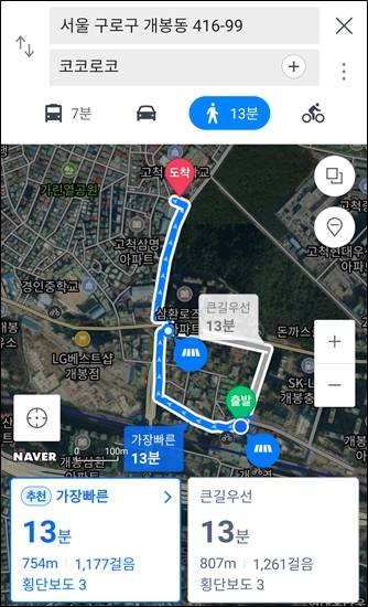 타고 나서 검색해 보니 걸어가도 13분이다.
