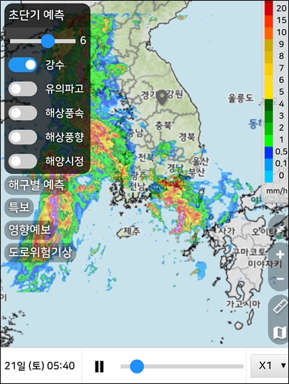 10시 넘으면 확실히 비구름이 전국을 뒤덮는다.