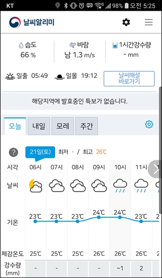10시부터 비예보