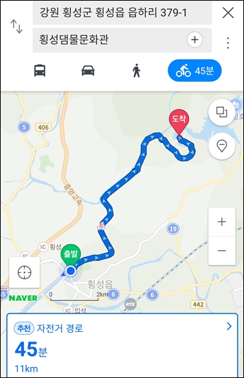 횡성댐까지 꽤 많은 거리를 가야한다.