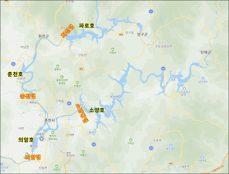 보안상의 이유로 지도에 땜이 나타나지 않는다.