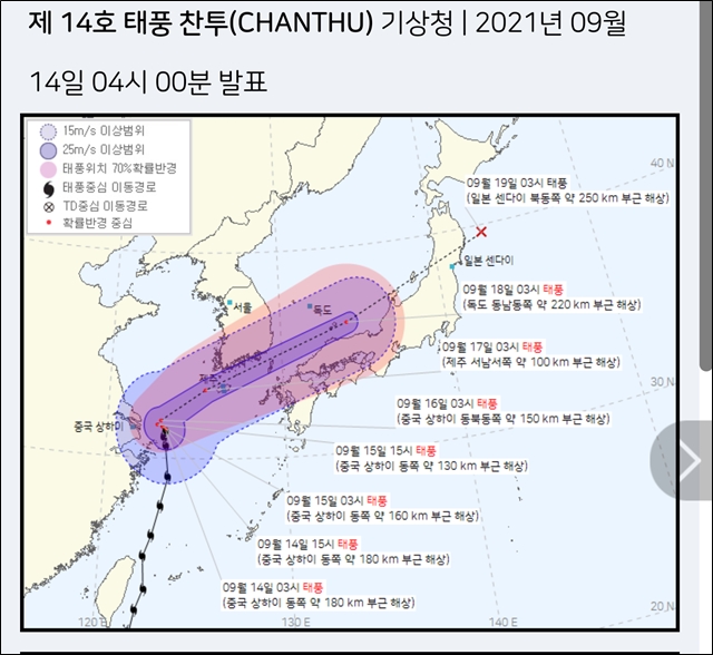 태풍 찬투가 제주도 남쪽으로 지나가서